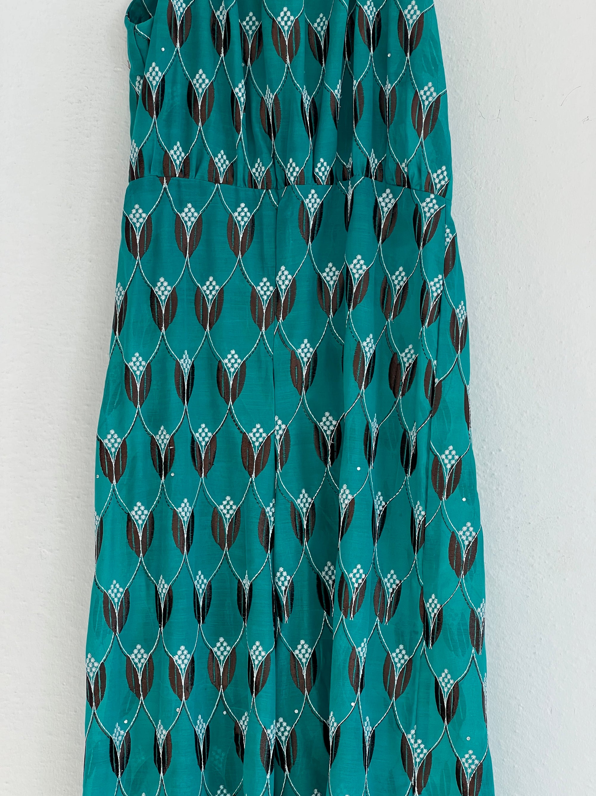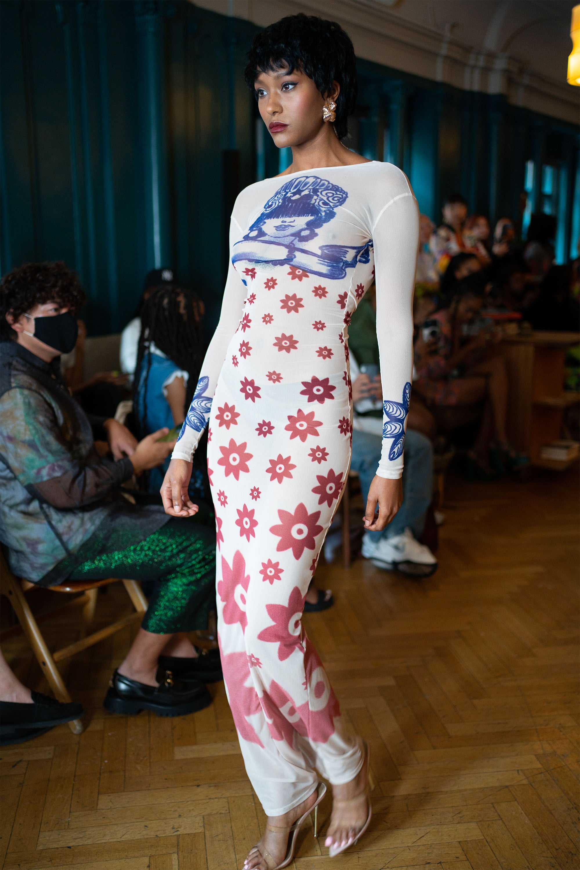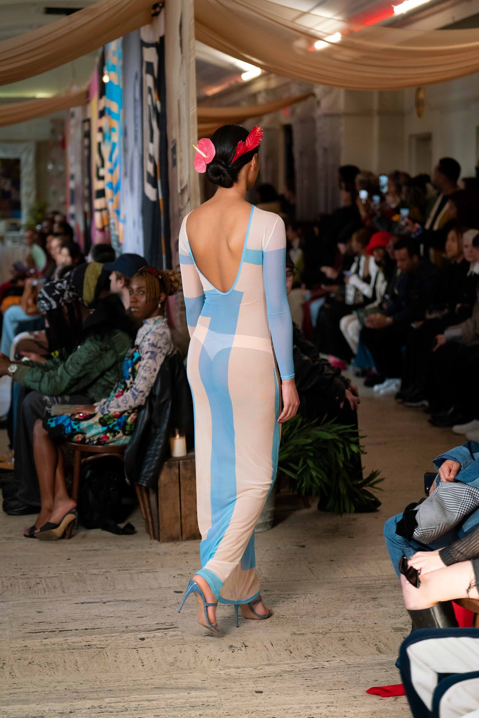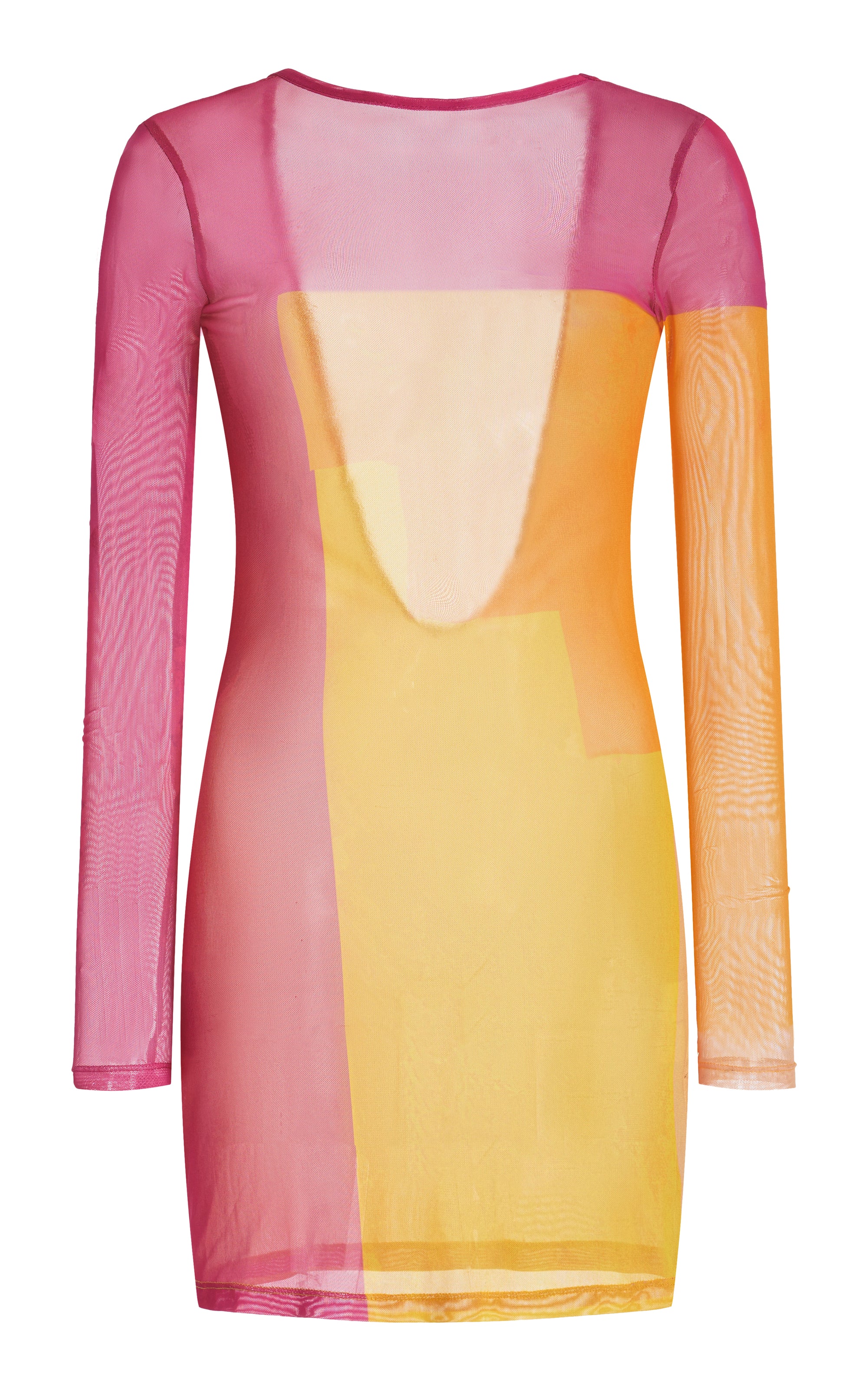 House of Aama Original La Siréne Print, Flesh Toned Power Mesh Material. Flower design on sleeve at wrist. Due to the unique printing method of this design, colors and patterns may vary slightly.