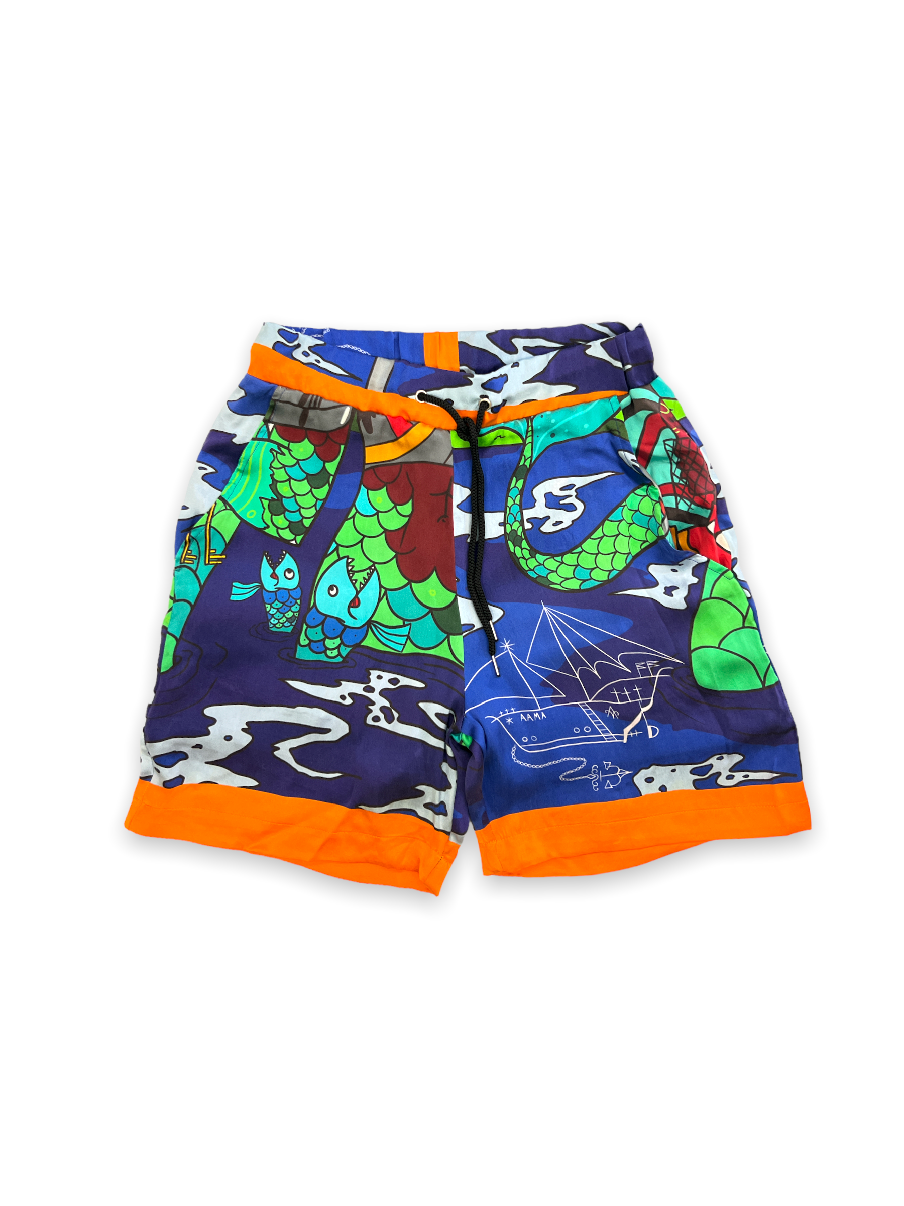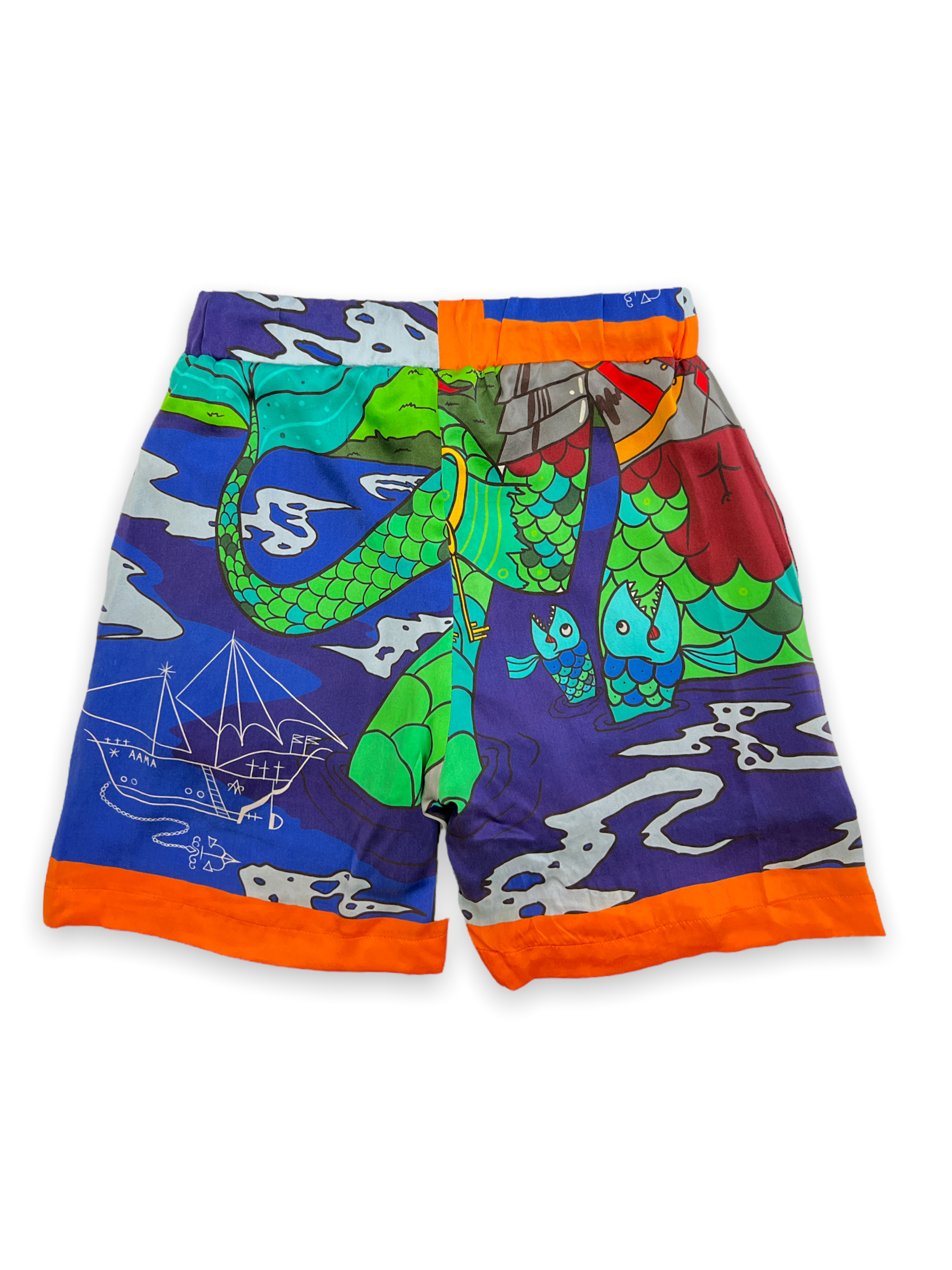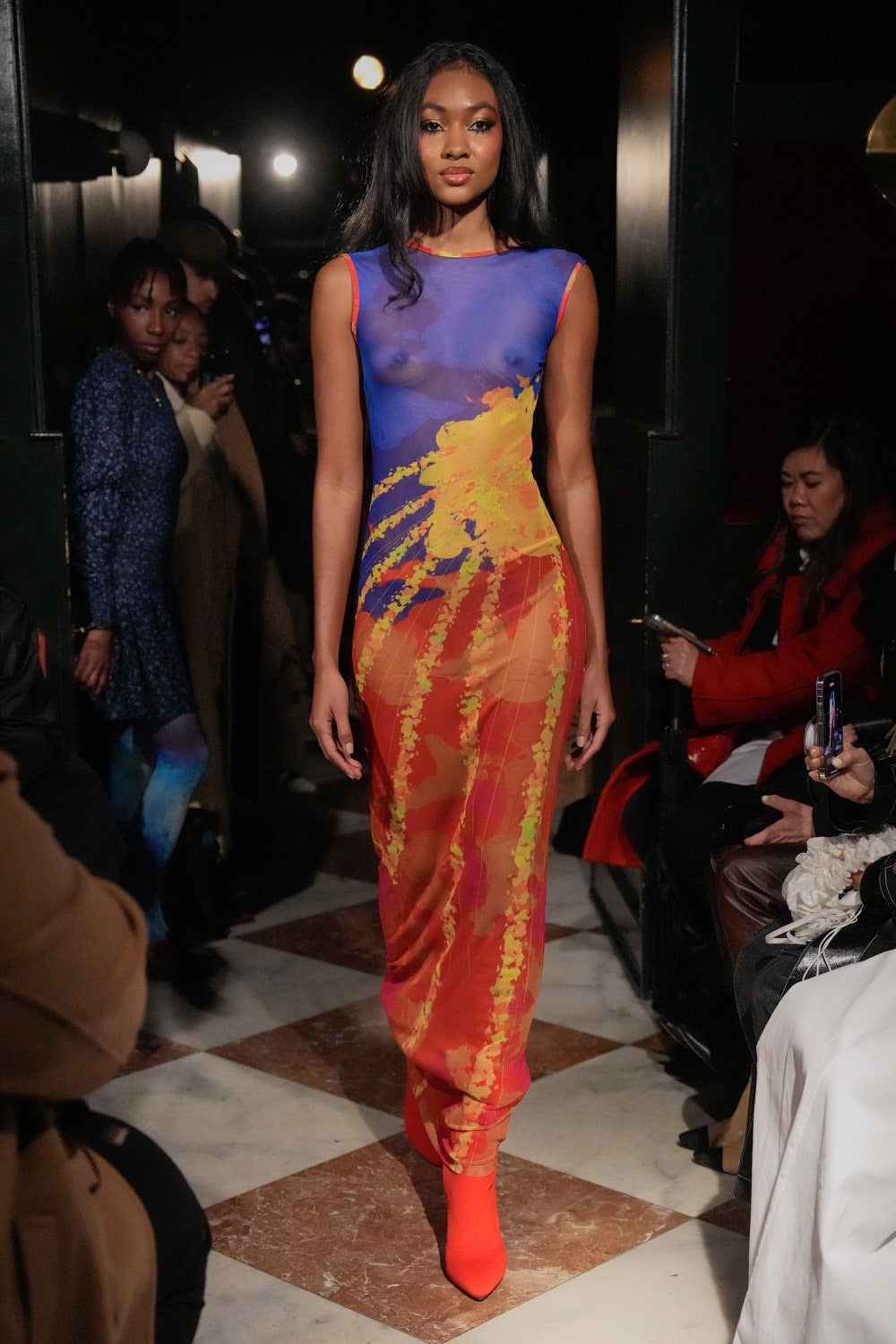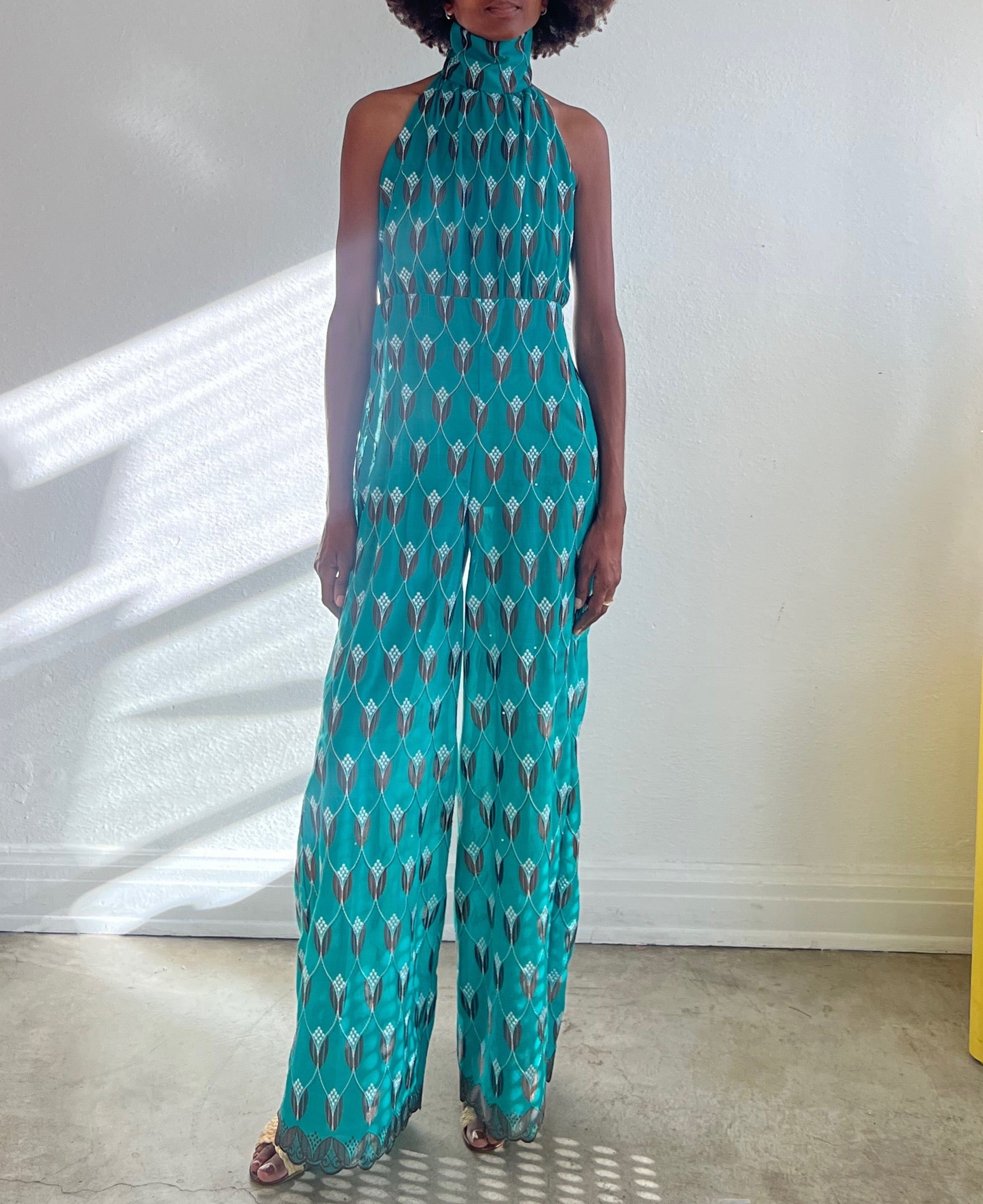 House of Aama Original La Siréne Print, Flesh Toned Power Mesh Material. Flower design on sleeve at wrist. Due to the unique printing method of this design, colors and patterns may vary slightly.